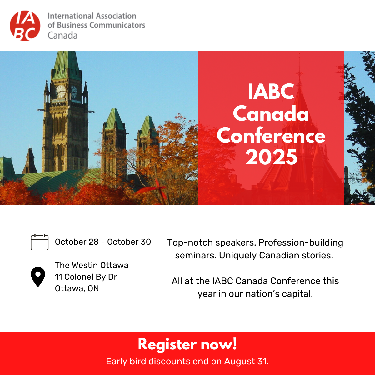Join Canada’s top communications professionals at IABC Canada Conference 2025 for an opportunity to connect, learn, and grow. From thought-provoking keynotes to dynamic discussions on leadership, strategy, emerging trends, and digital transformation, this is the must-attend event for communicators looking to elevate their impact.